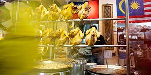 Chickens hanging in a street market in Taipei, Taiwan.